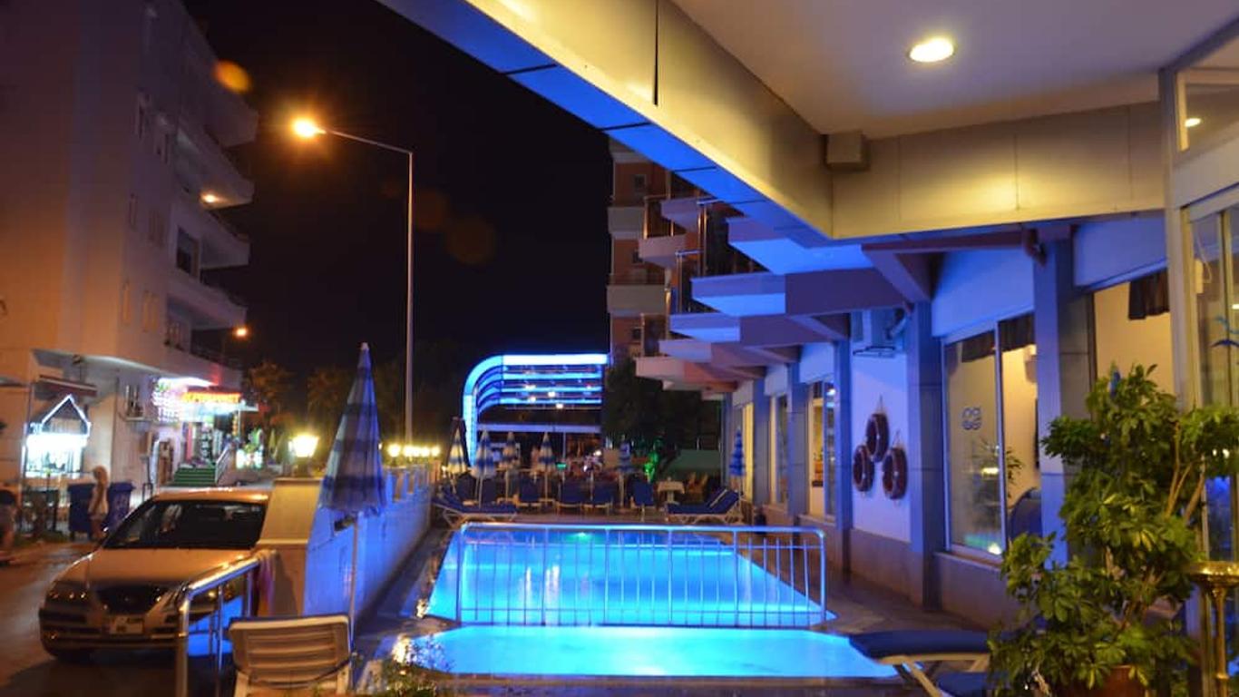 In a prime location, a few metres from Cleopatra's Beach in the popular resort of Alanya on Turkey's Mediterranean Coast, guests can walk to the centre brimming with shops, restaurants and bars or take a short bus ride. Here, guests can view the old dockyard and Arsenal, the Red Tower and Damlatas Cave, while a steep climb or couple of minutes' bus ride reaches Alanya Castle which perches on top of a rocky peninsula. Featuring a small pool with bar and restaurant, guests may also benefit from a private section of the beach for lazy days sun-bathing or swimming in the turquoise sea. The hotel offers comfortable accommodation and provides a good base for those enjoying both a beach holiday and also the benefits of a large resort. Our All Inc. system is between 11:00 till 22:00 hours. Soft Alcoholic Drinks (Beer – Wine )Soft Non-Alcoholic Drinks (Cola, fanta, concentrated fruit juices, tea, coffe etc. ) All imported drinks, cocktails, fresh fruit juices, Turkish coffee, ice cream, ice tea and cappuccino are extra chargable. ***AIR CONDITIONING IS EXTRA PAYMENT FOR BED & BREAKFAST AND ROOM ONLY ACCOMMODATIONS*** ( PER DAY 3 €)