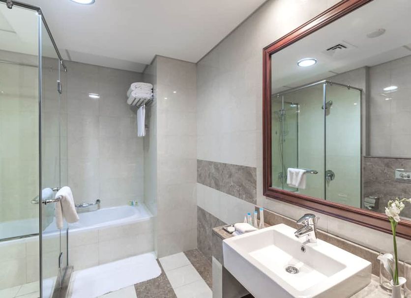 Hotel with an outdoor pool, near Ski Dubai An outdoor pool, a restaurant, and a fitness center are available at this hotel. WiFi in public areas is free. Other amenities include a coffee shop/cafe, 24-hour room service, and a business center. Atana Hotel offers 828 air-conditioned accommodations with minibars and safes. Beds feature premium bedding. Premium cable television is provided. Bathrooms include bathtubs or showers, bathrobes, slippers, and bidets. This Dubai hotel provides complimentary wireless Internet access. Business-friendly amenities include desks and phones. Additionally, rooms include complimentary bottled water and coffee/tea makers. Housekeeping is provided daily. Recreational amenities at the hotel include an outdoor pool and a fitness center.
