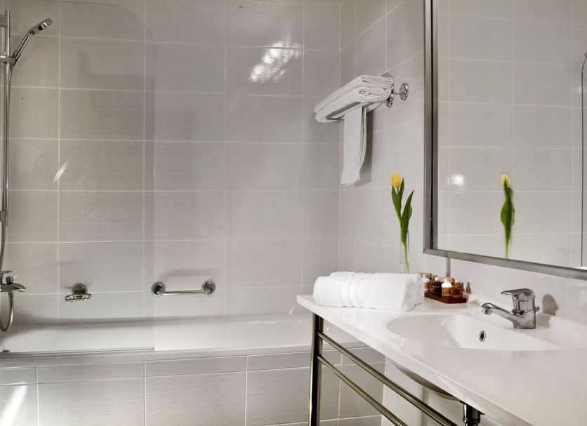 The elegant rooms at the hotel include a mini bar and all the necessities for an enjoyable stay. Hot drinks can be made with the available tea and coffee supplies, and enjoyed in the comfort of the room's living area.
