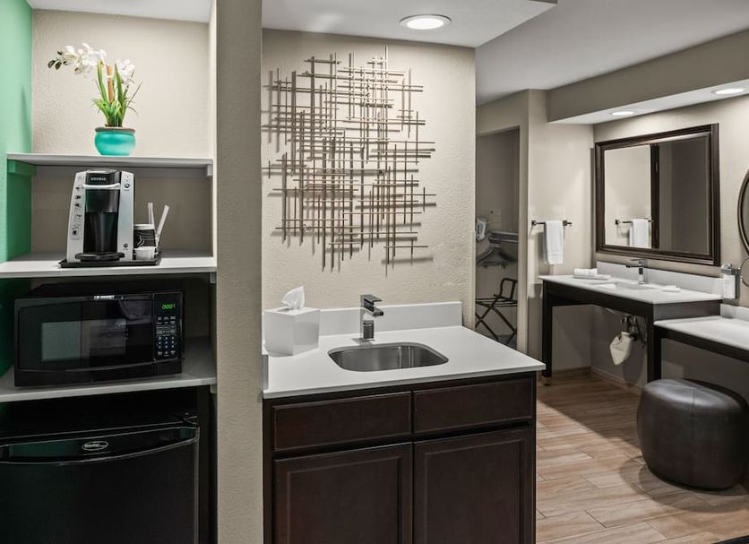 Pros (+) Staff person when we checked in was very nice. Bkfst area was comfortable, coffee was fine. Room was comfortable and well designed. Plenty of sink/counter space - nice to have an extra sink area. Nice...