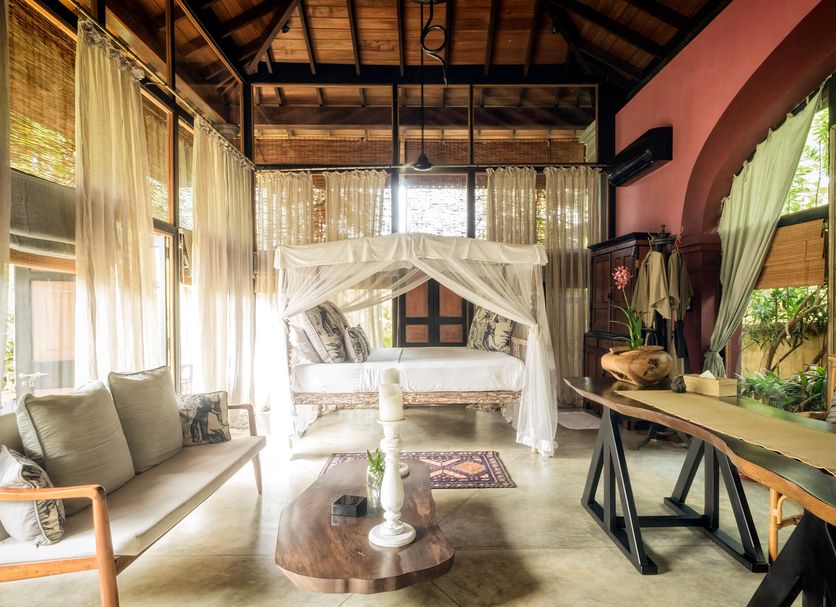 Eraeliya Villas & Gardens a boutique oceanfront beach resort in Weligama South Sri Lanka offering accommodation for up to 22 guests while ensuring personalized care for each visitor. With nine distinct living spaces, our accommodations promise a unique experience: - Four ocean-view suites within our main Villa Bawana. - Four standalone private villas: Villa Walauwa, Ambalama Pavilion, Garden House Nelum, and Beach Hut Muhudu Bella. - One modern Loft House featuring two loft suites: Ocean Loft & Garden Loft. Everything at Eraeliya Villas & Gardens is designed to make you feel like you are straight out of a movie scene. All rooms are filled with artworks and handcrafted pieces. Lush tropical gardens, an infinity pool, and the scenic beach at sunset will make your heart skip a beat in the best way possible.