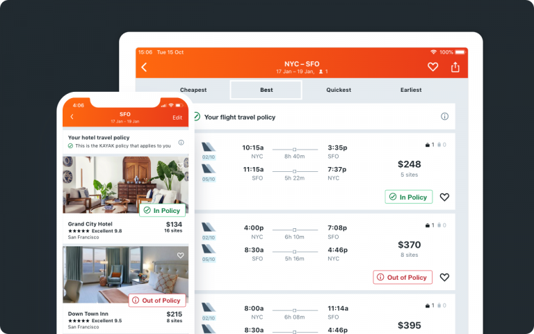 Unlike most business travel platforms, KAYAK for Business doesn’t sell or process your tickets and reservations. Instead, we search many airlines, travel agents and hotel sites to find the best prices and availability, which gives you the flexibility to book with the site you want. We make sure to find you the options that you need for business travel.